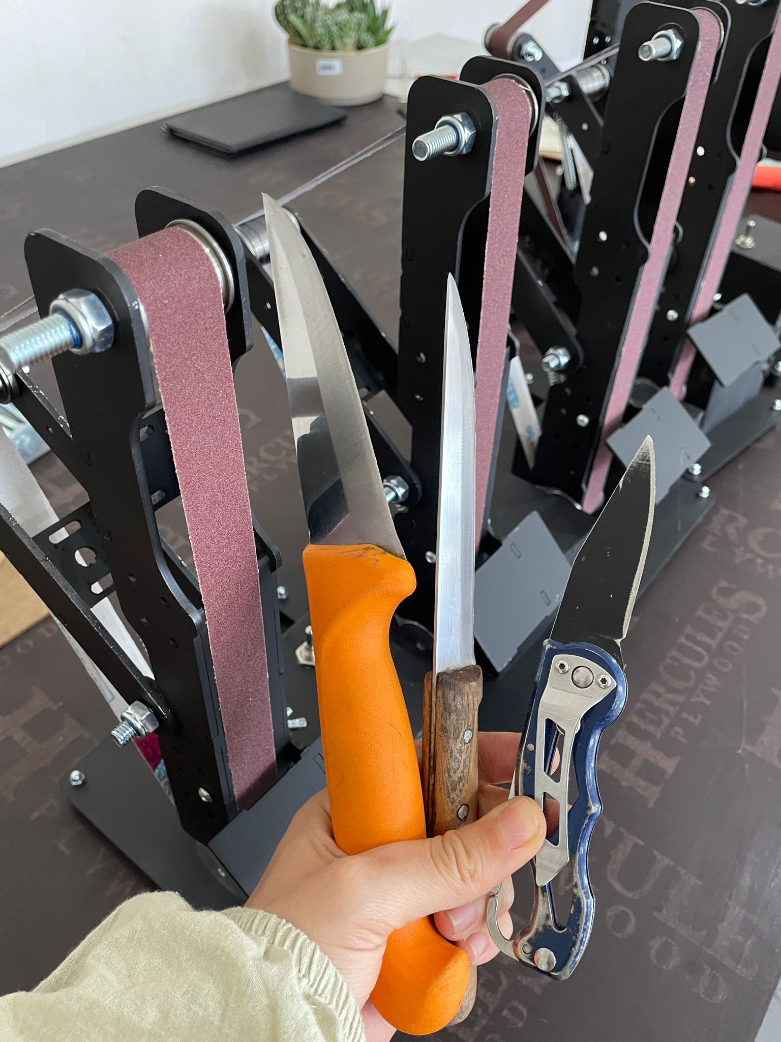 200W gücündeki mini bant zımpara makinesiyle bıçaklarınızı saniyeler içinde profesyonel şekilde bileyin! Taşınabilir, ayarlanabilir hız ve yön kontrolüyle evde, atölyede veya mutfakta kusursuz bileme.